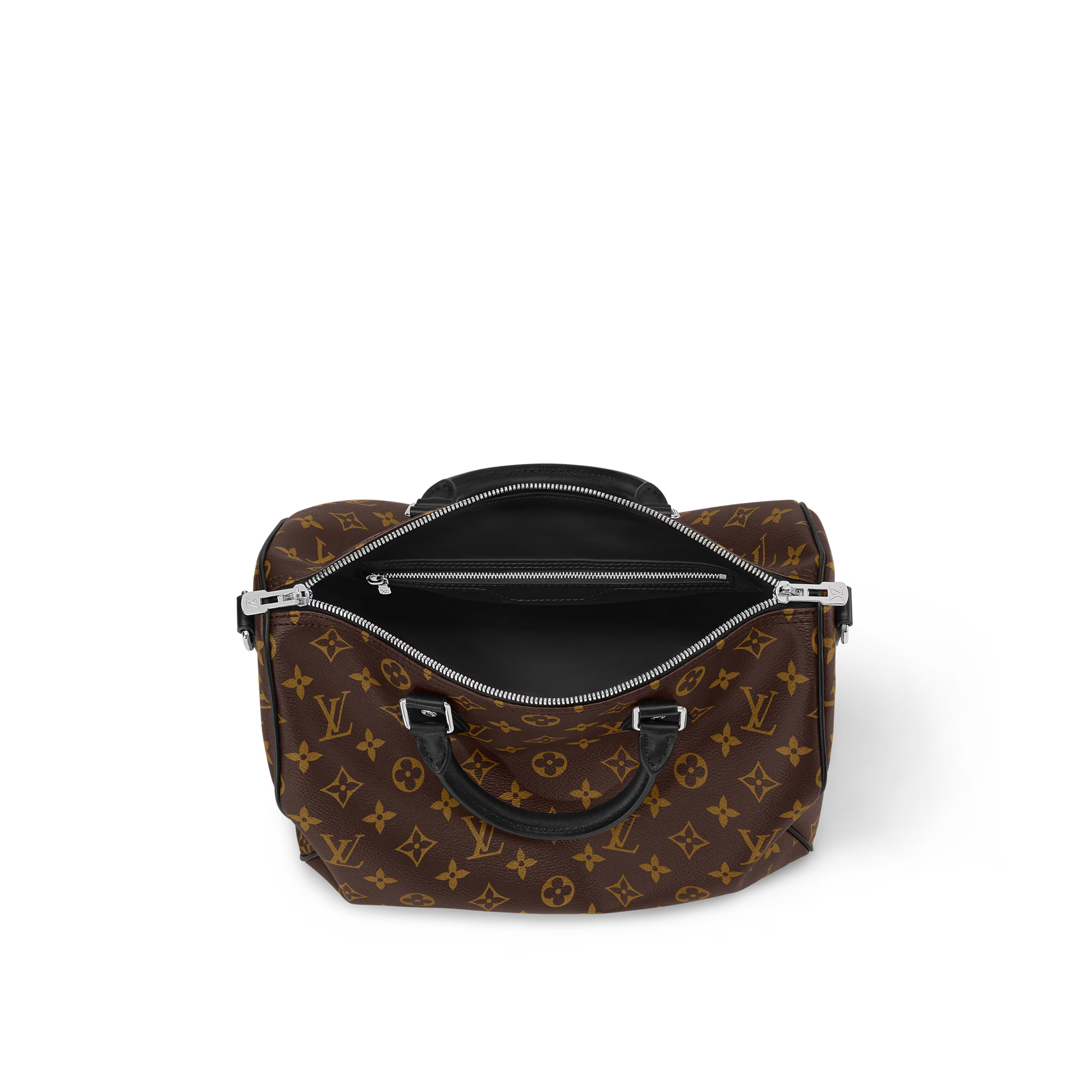 Designed to stand out, the Speedy Soft 30 Dark is the perfect travel companion. It is made from the House’s iconic Monogram coated canvas trimmed with black leather and finished with a bold, gothic-inspired chain. The chic and capacious design also features a name tag and tassel, and has an internal zipped pocket to safely store a passport and other important items. The new shoulder Toron handle adds the final flourish.
